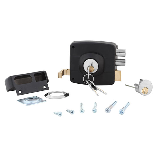 Cerradura Exterior Sobreponer Odis 393 con Caja Metálica Para Reja, Puerta Metálica o Corredera