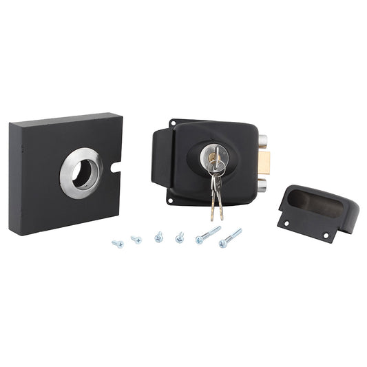 Cerradura Embutir Oister Con Placa Trancura Manilla Interior - Negro