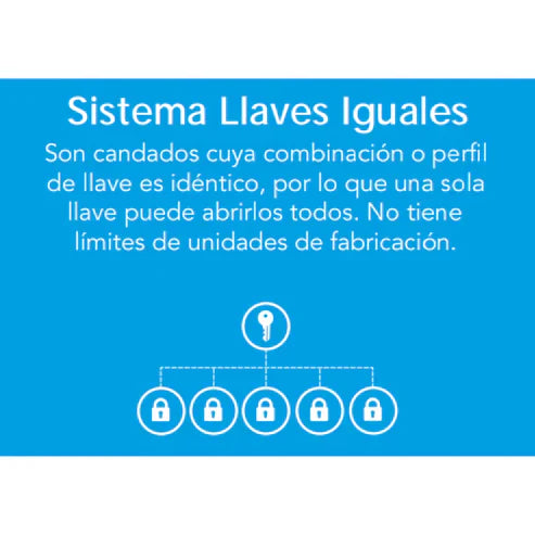 Un candado igualado es la solución perfecta para simplificar tu vida 🛠️🔒. Todos los candados del mismo grupo comparten la misma llave 🗝️, así que olvídate de cargar con un llavero enorme 🔄🎒.