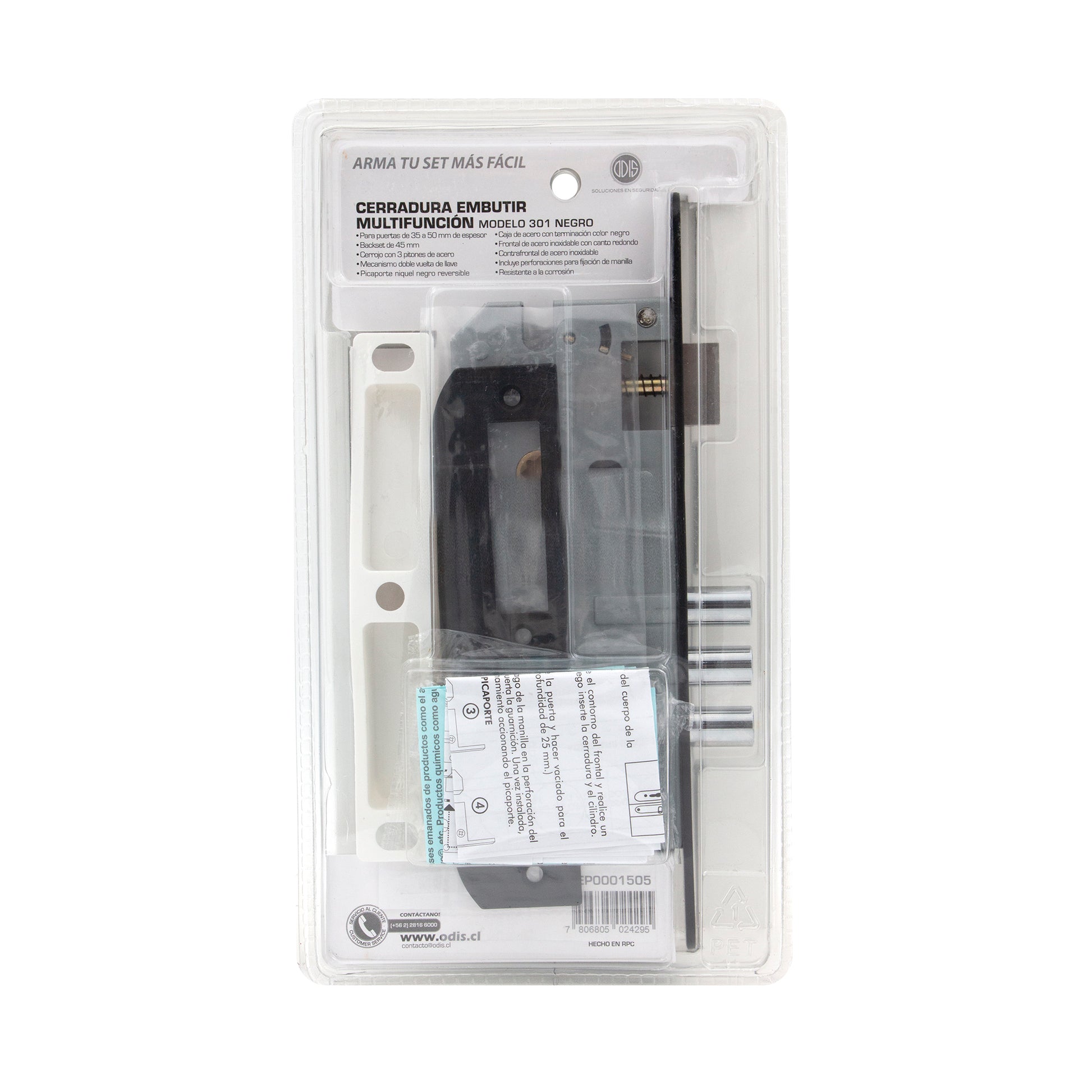 Cerradura Embutir Odis 301 Backset 45mm Negro