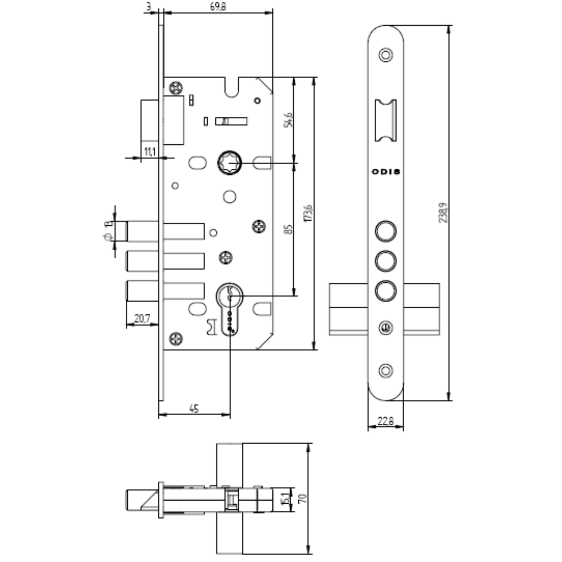 Cerradura Embutir Odis 301 Multifunción - Plata
