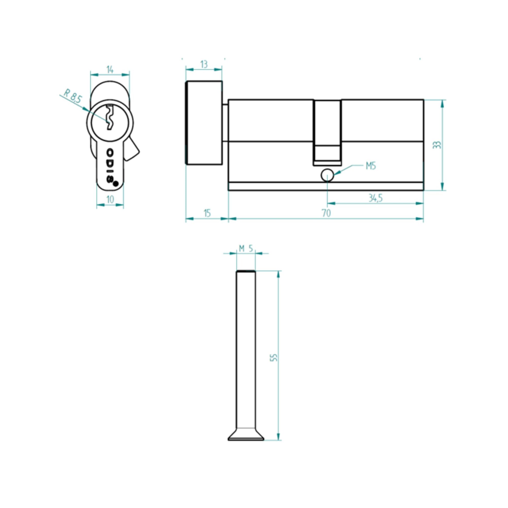 Cilindro Odis Llave-Seguro 70mm - Niquél Satinado