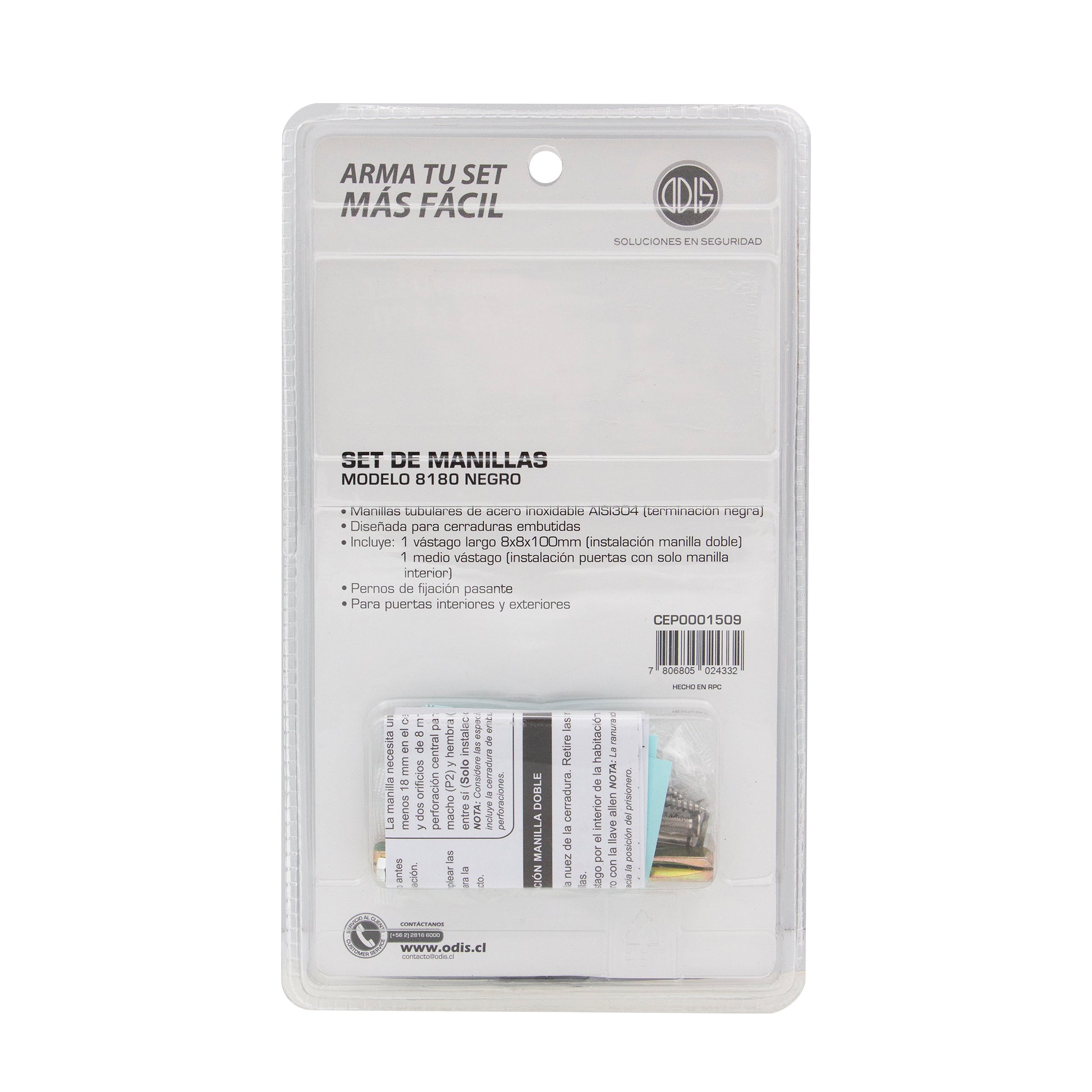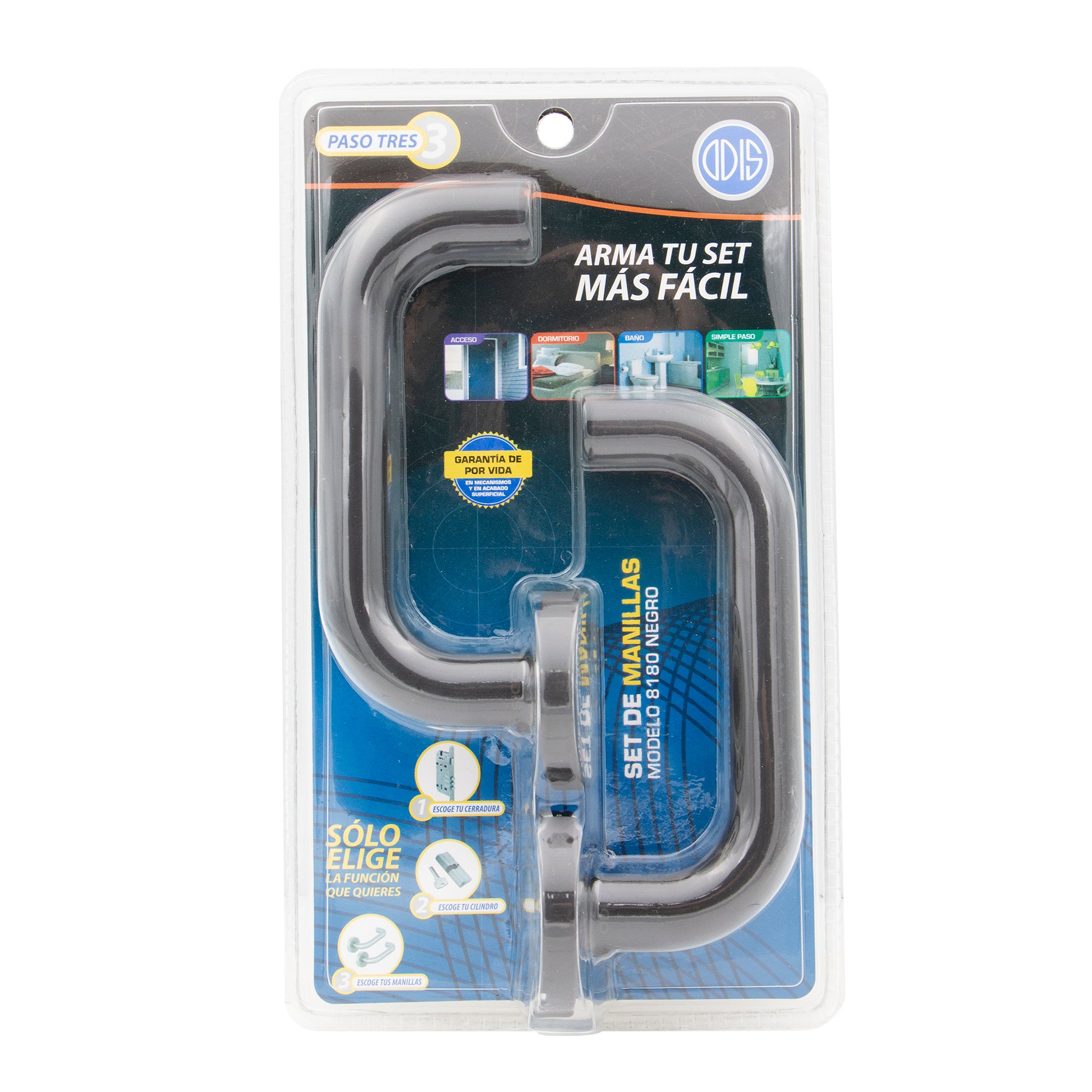 - Combínalo con otros productos de la línea Arma tu Set. - Manillas Odis 8180 Multifunción Negro + 2 Vástagos- Manilla con diseño bidireccional, apta para puertas de apertura izquierda y derecha, ofreciendo versatilidad y estilo en un mismo producto- Fabricadas en acero inoxidable AISI304 para mayor resistencia y durab