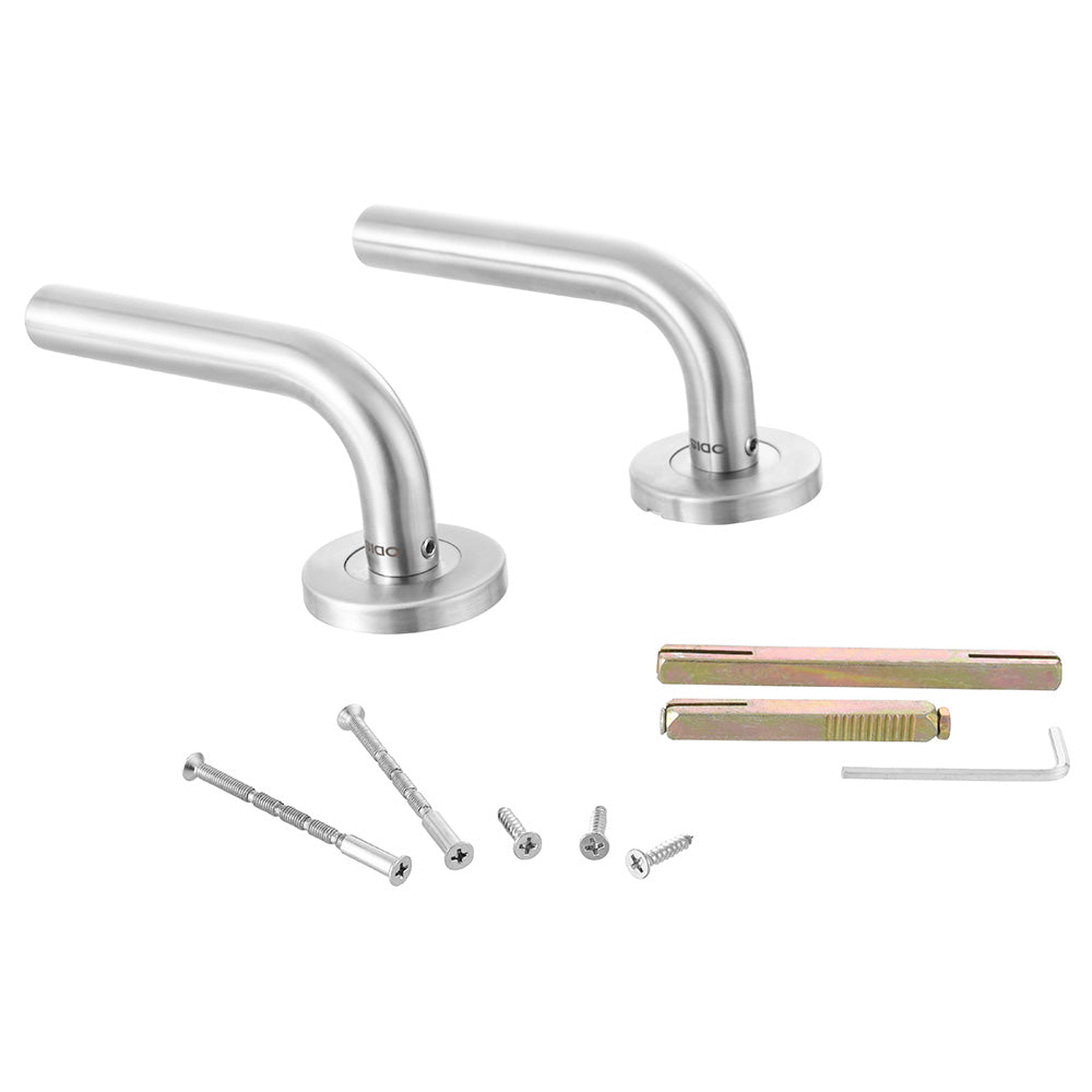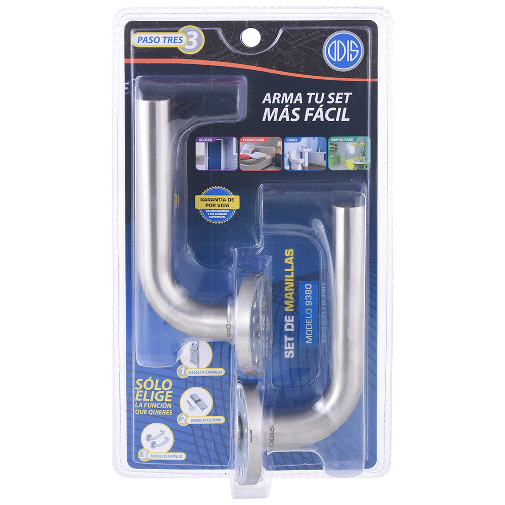 - Combínalo con otros productos de la línea Arma tu Set.- Manillas tubulares de acero inoxidable satinado- Diseñada para cerraduras embutidas- Pernos de fijación pasanteFunciones:- Manillas (Simple Paso)- Manilla interior (izq o der) y rosetas con perforación para cilindro Euro (Acceso)- Manillas y rosetas con perforac