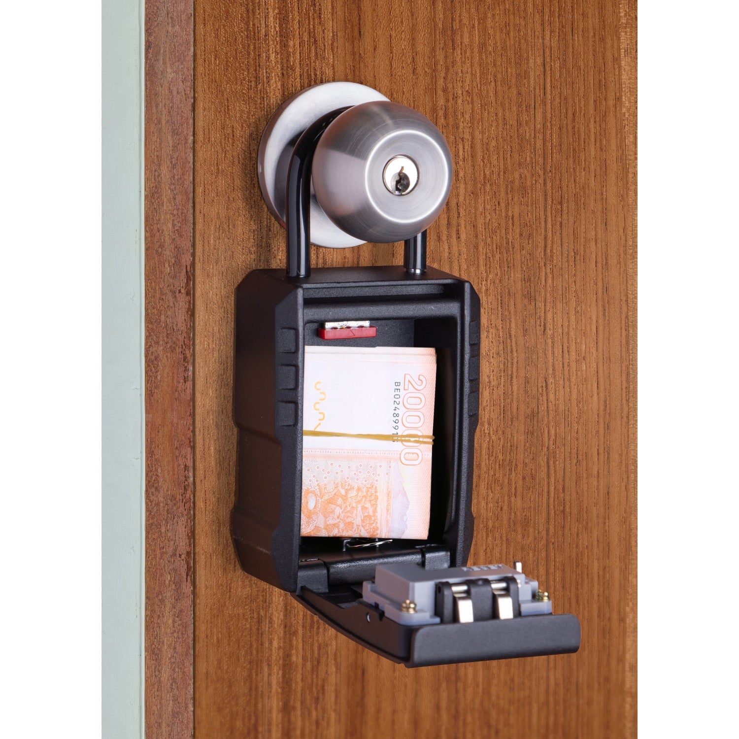 Caja Guarda Llaves Modelo 100 Blindada con CombinaciónProtege tus llaves con la Caja Guarda Llaves Modelo 100, una opción segura y práctica Equipada con 4 diales que ofrecen más de 27,000 combinaciones, garantiza la seguridad de tus llaves Con gancho de acero recubierto, tapa protectora de diales y sistema de cambio de