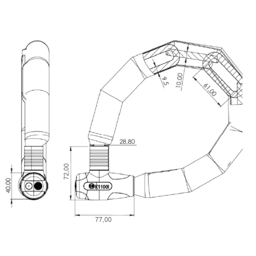 Candado Bicicleta Cadena Integrada Odis Bike 9,5mmx1m Llave Mapa