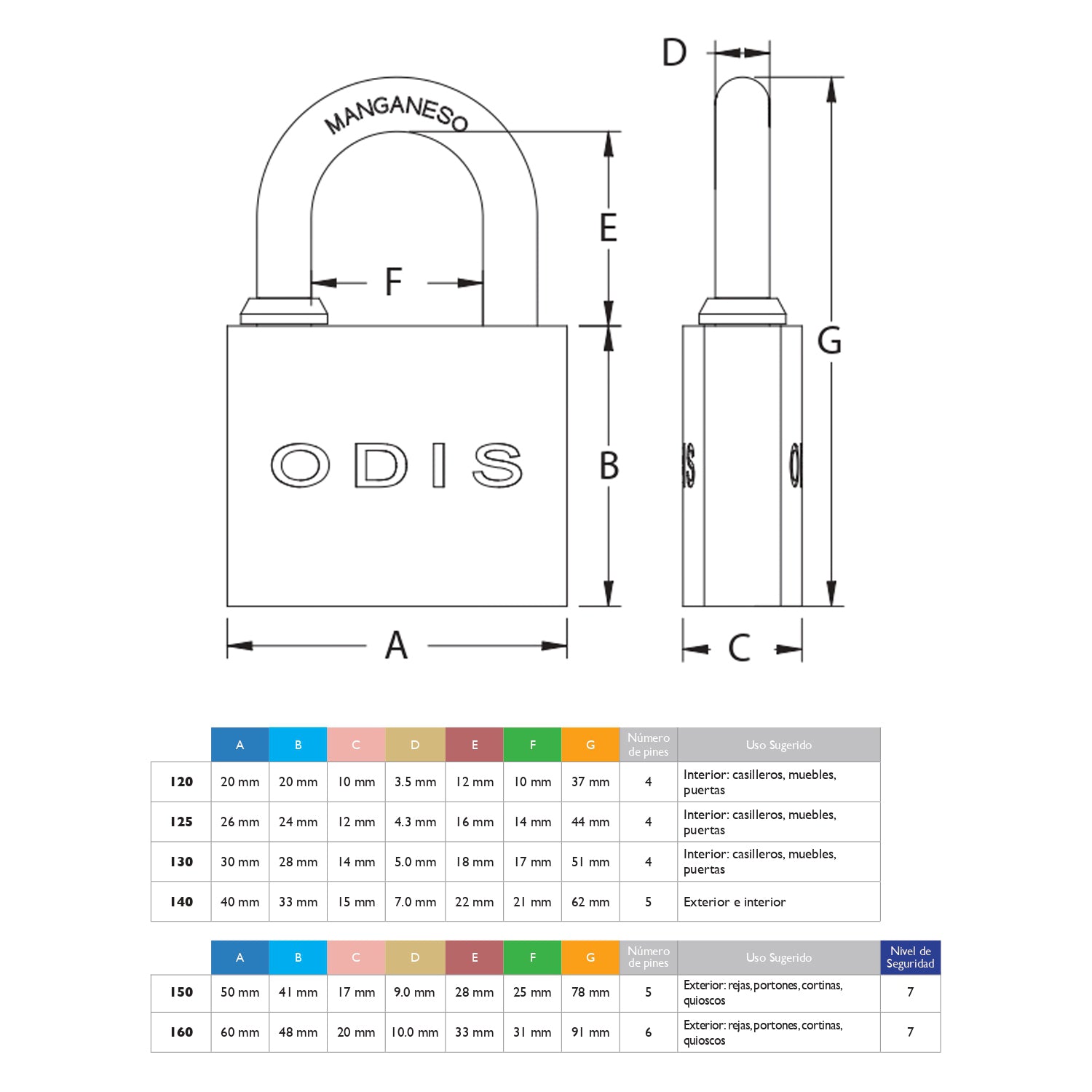 - Cuerpo liso de bronce sólido- Gancho de acero al manganeso- Sistema de cierre con traba de doble eslabón- Sistema de combinación con 4,5 y 6 pines- Incluye 3 llaves estándar por candado- Resistencia al corte de gancho por compresión- Resistencia a la tracción del gancho- Resistencia al corte de sierra