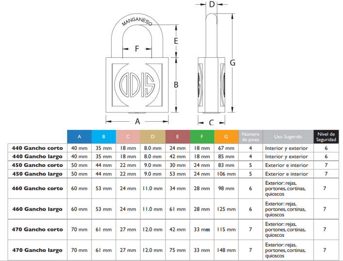 - Sistema de cierre con traba de doble eslabón de acero inoxidable