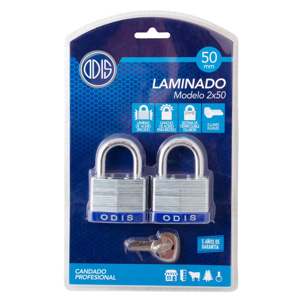 Pack 2 Candados Laminados Odis 50mm Acero Zincado - Llaves iguales