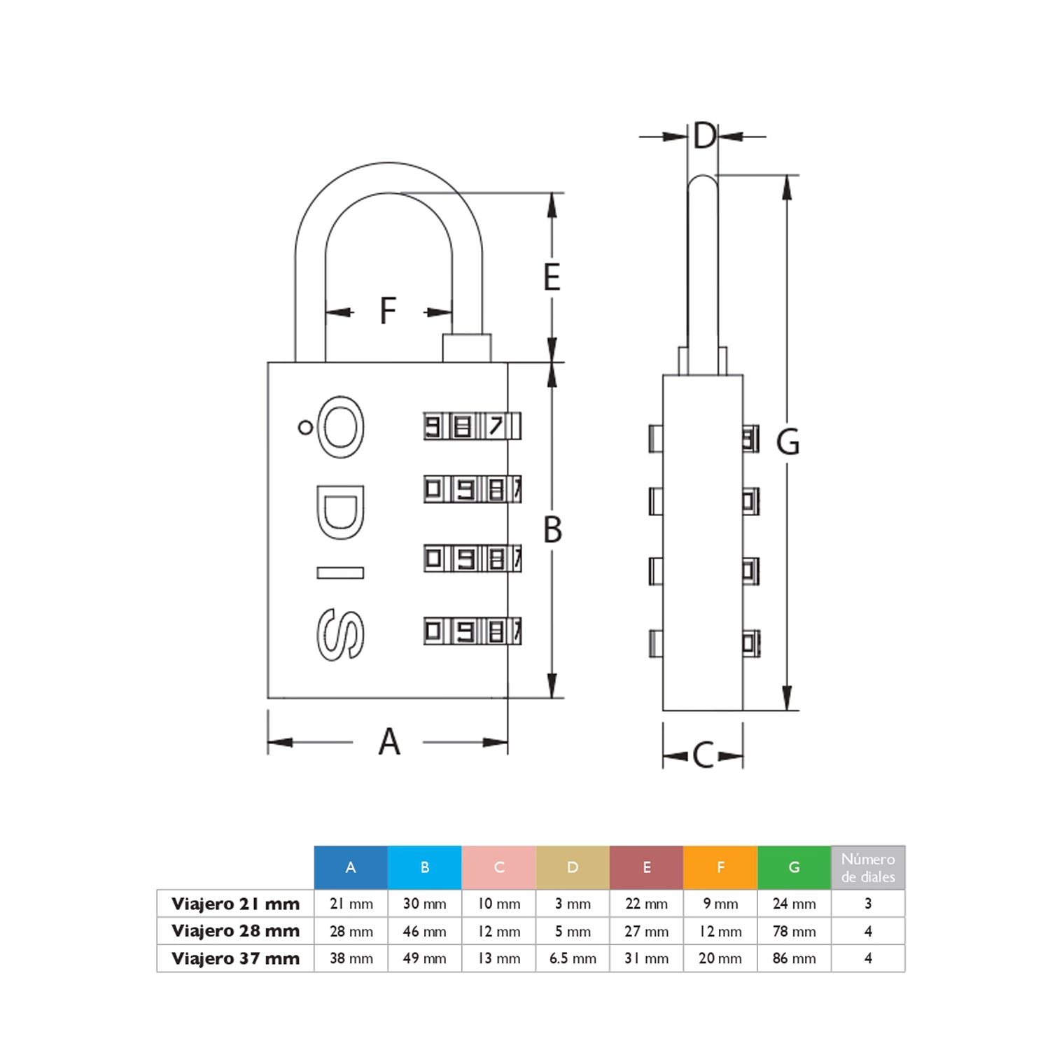 Candado con clave Odis 37mm 4 Diales Maleta Casillero