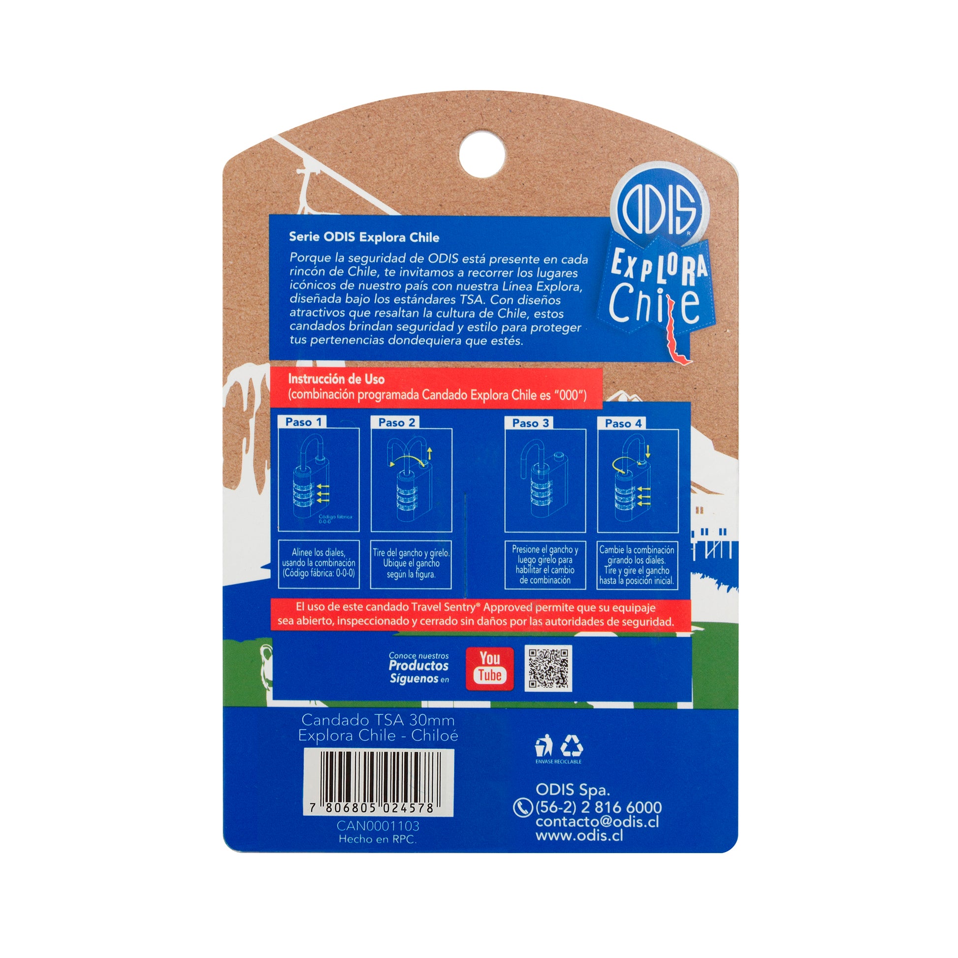 Candado Odis TSA Viaje Maleta 30mm con clave Línea Explora - Chiloé