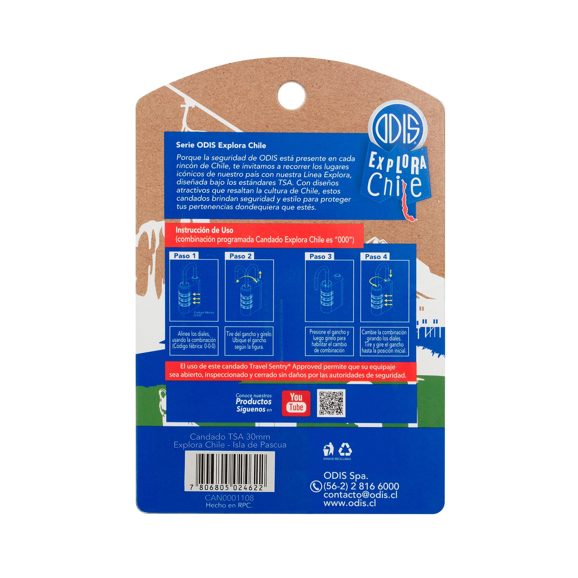Candado Odis TSA Viaje Maleta 30mm con clave Línea Explora - Isla de Pascua