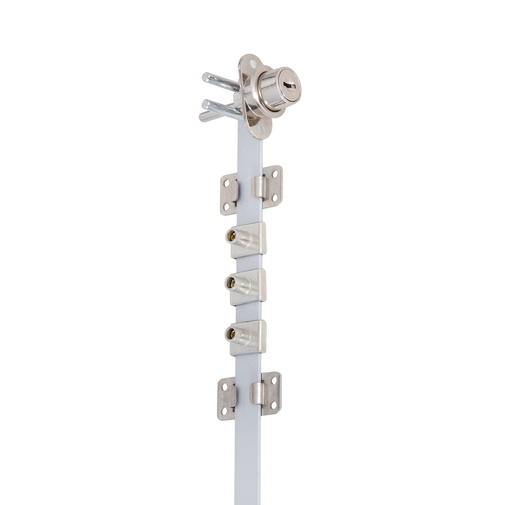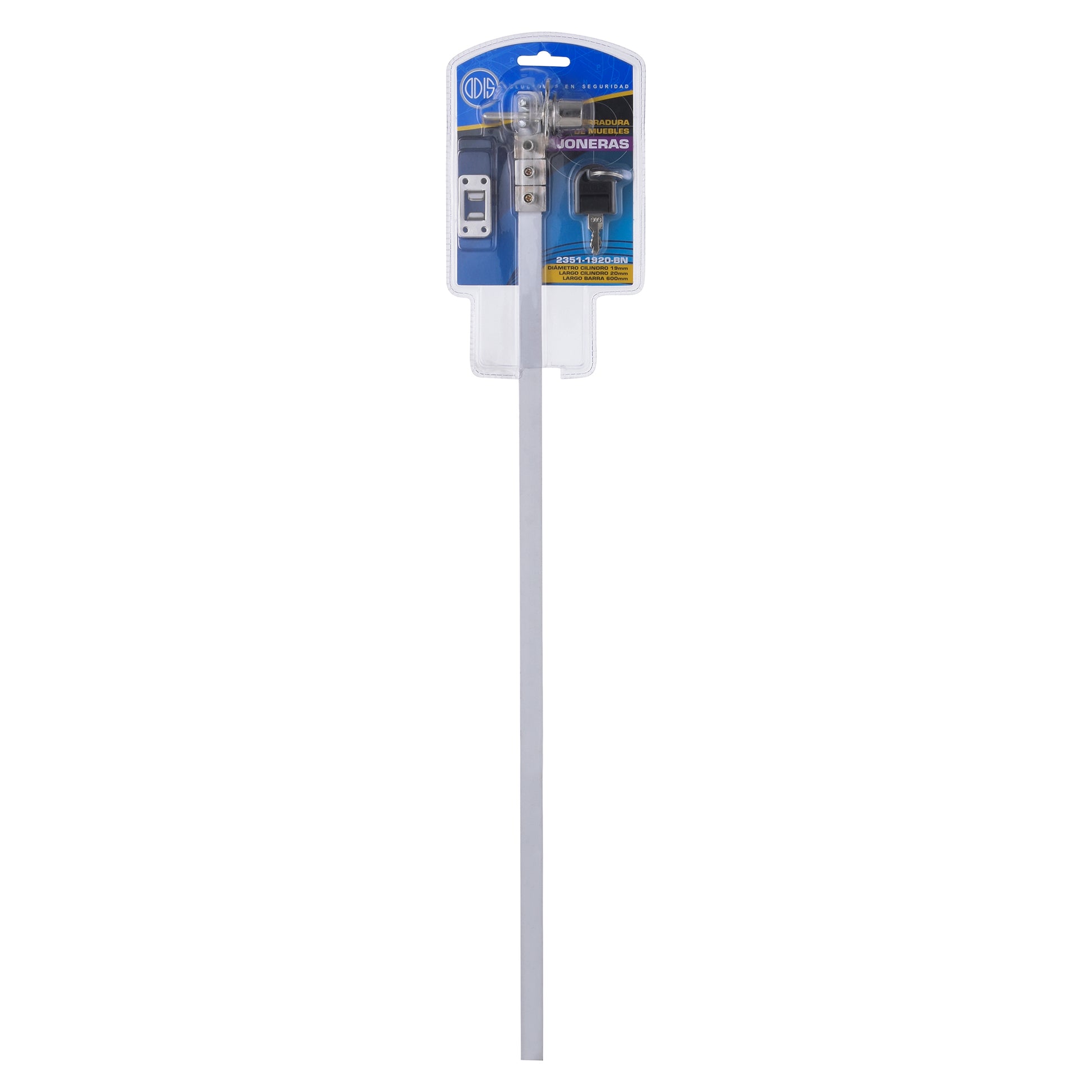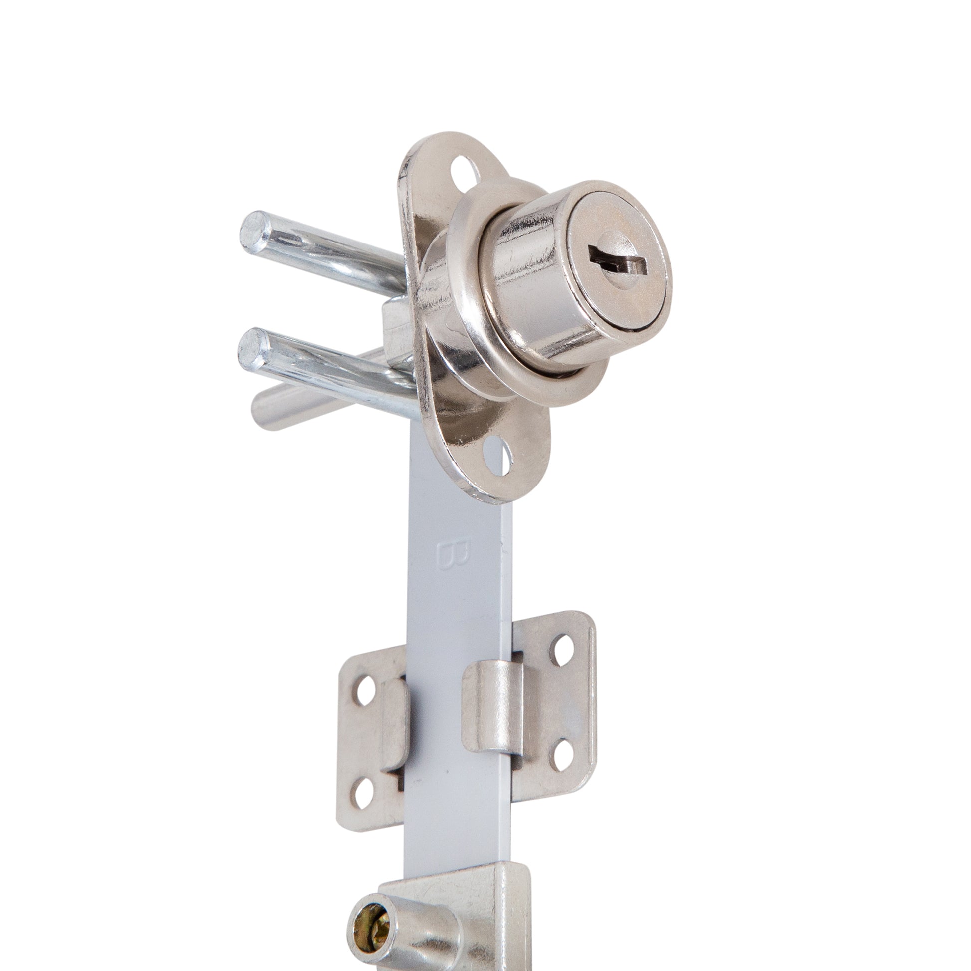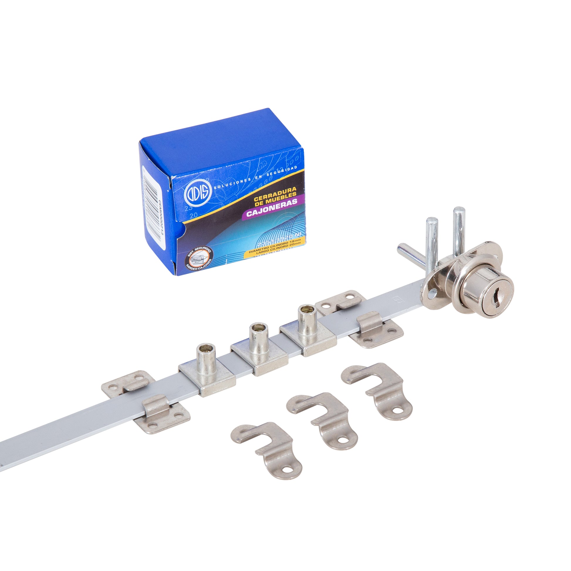 Seguridad compacta y resistente para tus muebles.- Cerradura de mueble para cajoneras o kardex- Diámetro 19 mm / Largo 20 mm- Largo barra 120 cm- Cilindro de 19 mm- Instalación frontal- Barra 1200 mm + 3 carros + 2 Guias- Cilindro y pistón de zamac- Sistema de combinación de placas/lainas- Incluye 2 llaves- Instalación