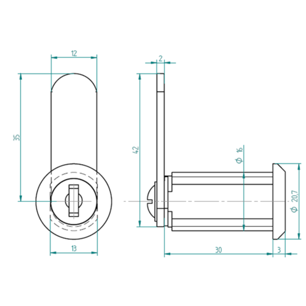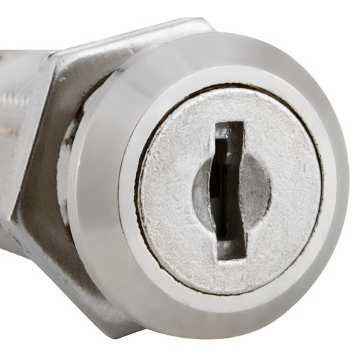 Seguridad compacta y resistente para tus muebles.- Cerradura de mueble para locker, muebles metálicos, tableros eléctricos- Cilindro y pistón de zamak Sistema de combinación de placas/lainas- Cerrojo tipo leva- Incluye recibidor angular- Incluye 2 llaves
