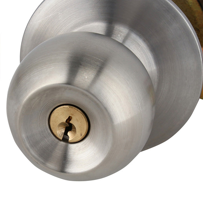- Cerradura cilíndrica de acceso inoxidable- Backset 60mm- Para puertas de 35 a 55 mm de espesor- Pomo exterior con llave / Pomo interior libre- Frontal, pomo, contrafrontal y roceta de acero inoxidable- Cilindro latón- Picaporte de zamak con pestillo de seguridad anti-tarjeta- Incluye recibidor plástico, 4 Tornillos #