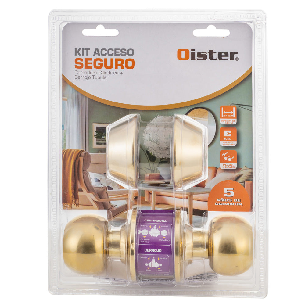 Kit Oister Igualado: Cerradura Cilíndrica Acceso + Cerrojo Tubular Lla