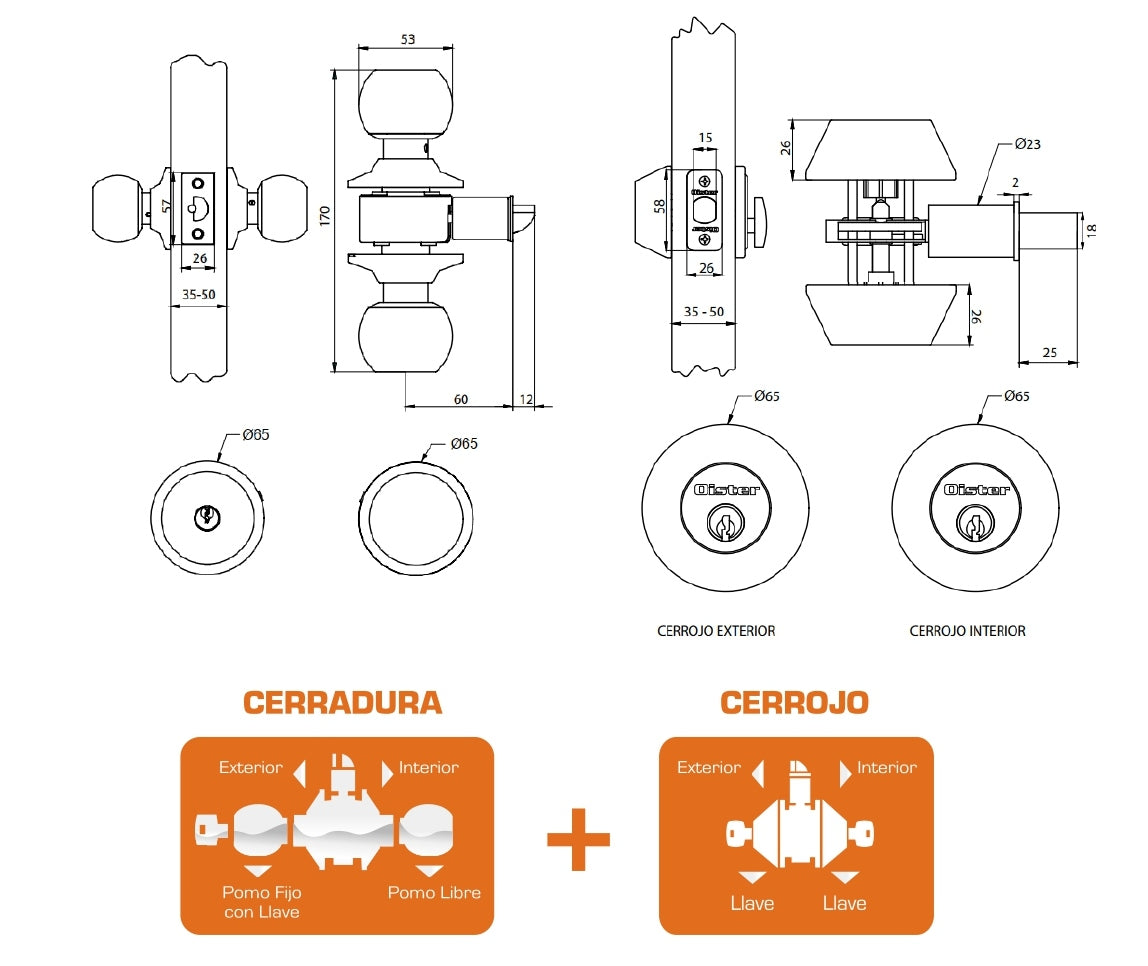 Kit Oister Igualado: Cerradura Cilíndrica Acceso + Cerrojo Tubular Llave-Llave
