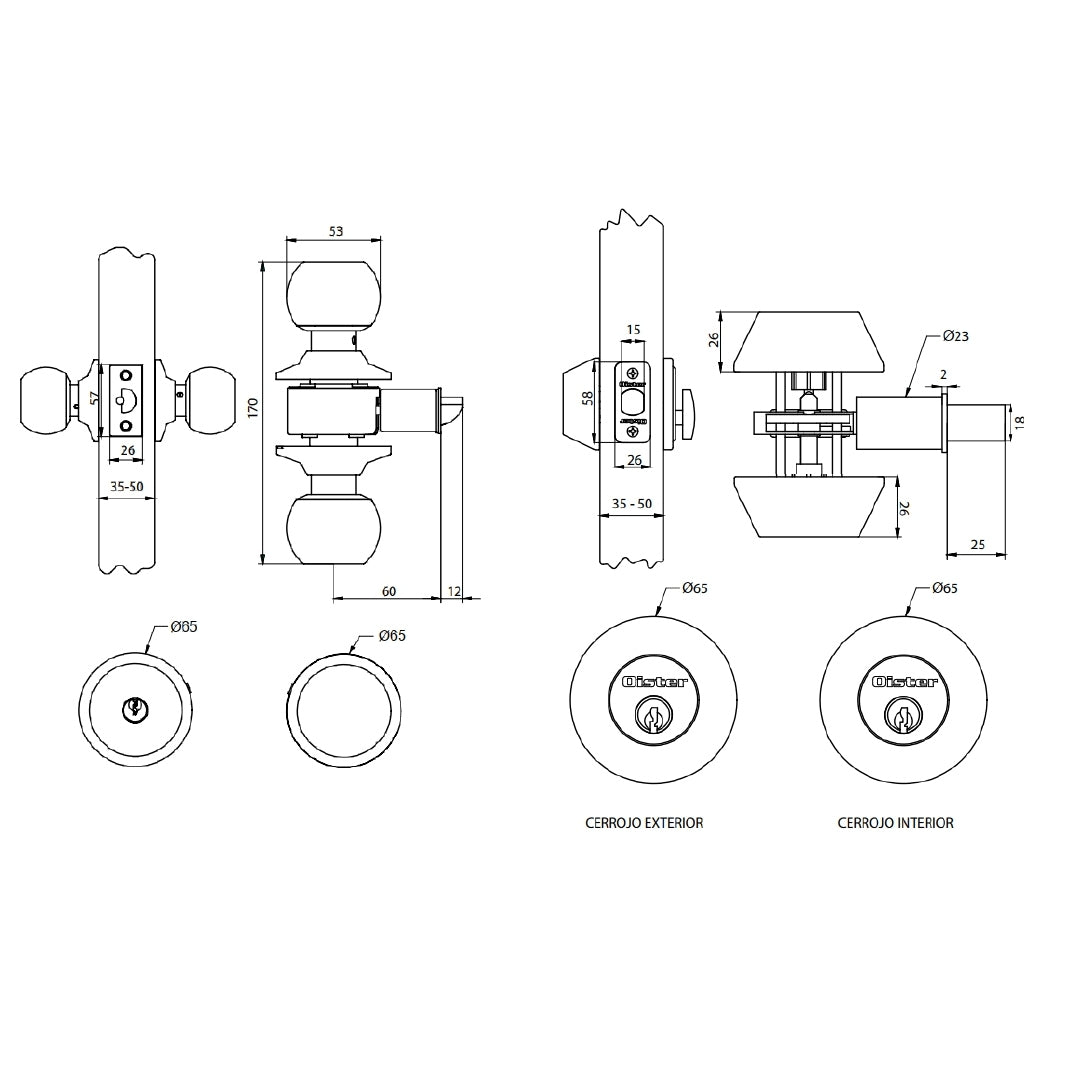- Pomo exterior con llave / Pomo interior libre