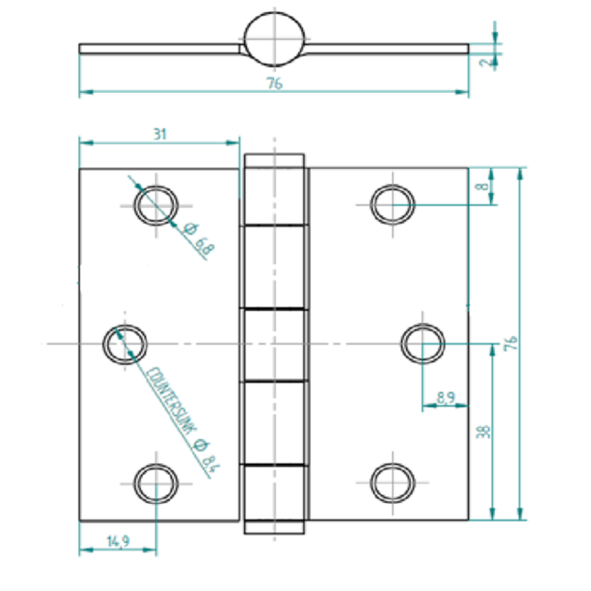 Diseñadas para resistir, nuestras bisagras combinan calidad, seguridad y durabilidad. Porque en cada detalle, protegemos lo que más te importa.- Set de 2 bisagras- Medidas: 3” x 3” x 2,0mm- Acabado: Níquel Satín- Canto recto- Incluye tornillos de fijación