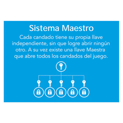 Un candado amaestrado es parte de un sistema súper práctico 🔑. Cada candado tiene su propia llave individual, ¡pero aquí está la magia! ✨ Todos pueden ser abiertos con una única llave maestra 🏅.