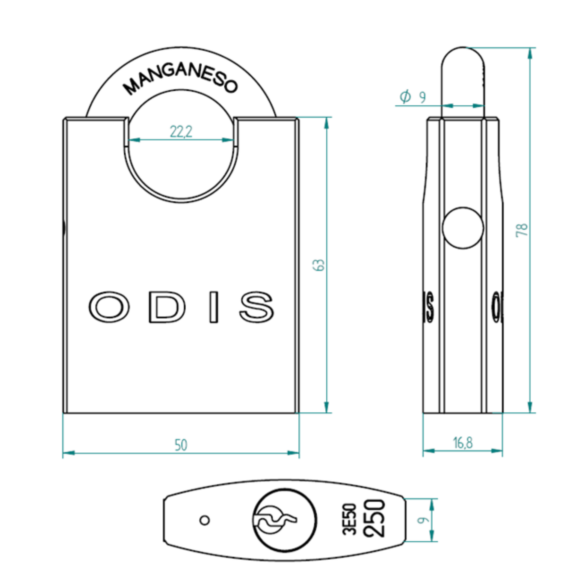 Candado Odis 250 con Hombros 50mm- Amaestrado